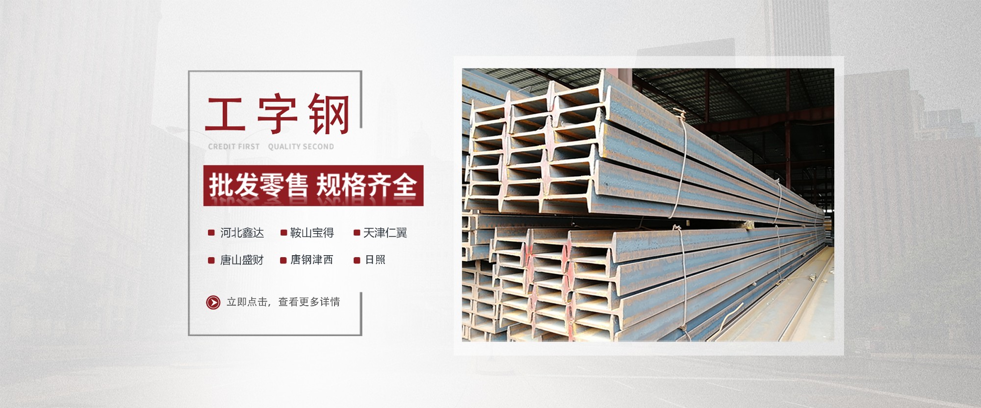 佛山市銀洲貿(mào)易有限公司于1997年創(chuàng)立,位于全國(guó)最大的鋼材批發(fā)物流市場(chǎng)--廣東樂(lè)從,經(jīng)過(guò)20多年的發(fā)展,銀洲現(xiàn)已發(fā)展成華南地區(qū)大規(guī)模的型材銷售商,設(shè)有大型商場(chǎng)式門市及室內(nèi)倉(cāng)庫(kù)面積達(dá)2萬(wàn)平方米,是一家從事鋼鐵貿(mào)易、加工、配送的大型民營(yíng)企業(yè)。銀洲主要經(jīng)營(yíng)工字鋼、槽鋼、角鋼、H型鋼等多種鋼鐵產(chǎn)品現(xiàn)貨。